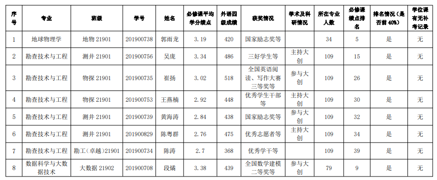 经本人报名,学院审核,同意推荐以下8位同学入选长江大学“创新人才培育计划”,特此公示。