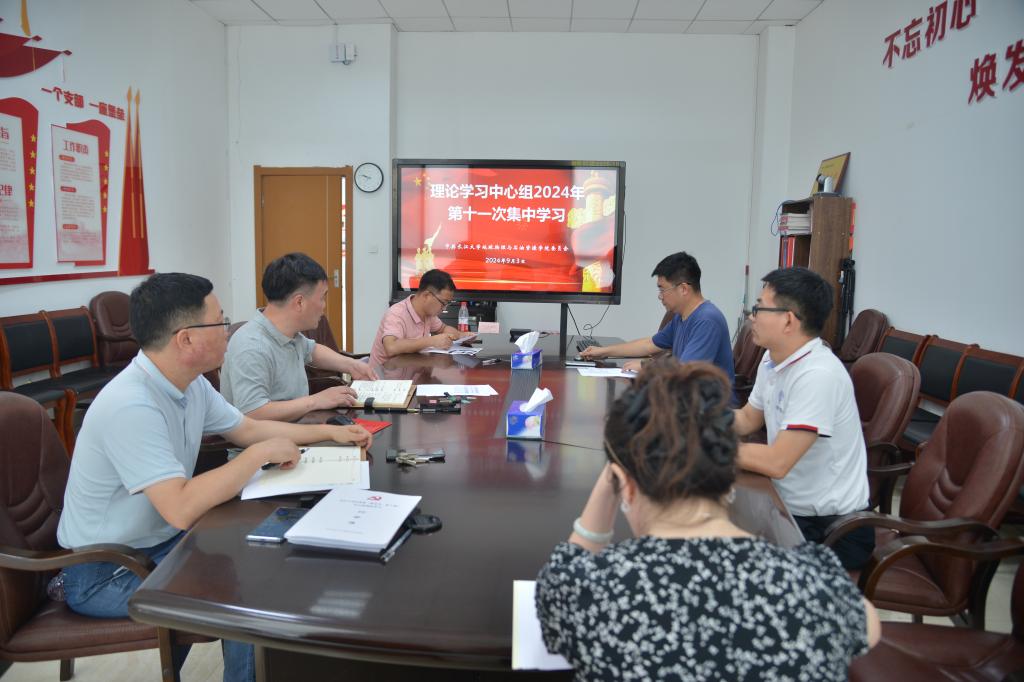 (通讯员 游菁)9月3日上午,地物学院党委中心组在石油科技大楼D111会议室,组织开展了2024年第十一次集中学习,分党委书记周俊主持会议。