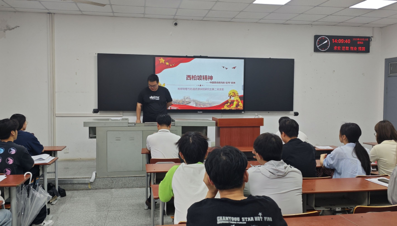 研究生第二党支部张驰同志以“西柏坡精神”为主题讲授微党课。他讲述了西柏坡精神的实践来源、主要内涵和历史地位。他指出,西柏坡精神以“两个务必”为核心,强调执政党必须永葆谦虚谨慎、艰苦奋斗的政治本色。西柏坡精神是新时代治国理政的行动指南,彰显中国共产党人的历史自觉和时代担当。