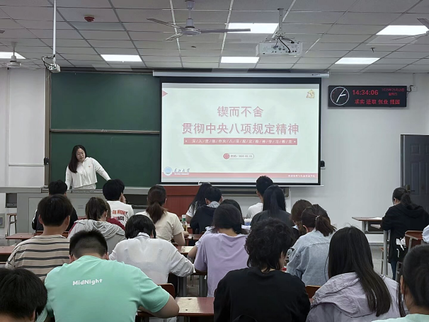 在微党课环节,本科生第二党支部书记游菁同志以“锲而不舍贯彻中央八项规定精神”为主题讲授微党课。她指出,要在思想上划出红线、在行动上明确界限,要敢于正视问题、善于发现问题。她强调,要让严格贯彻执行中央八项规定及其实施细则精神成为习惯,让学习教育不走过场、不流于形式。