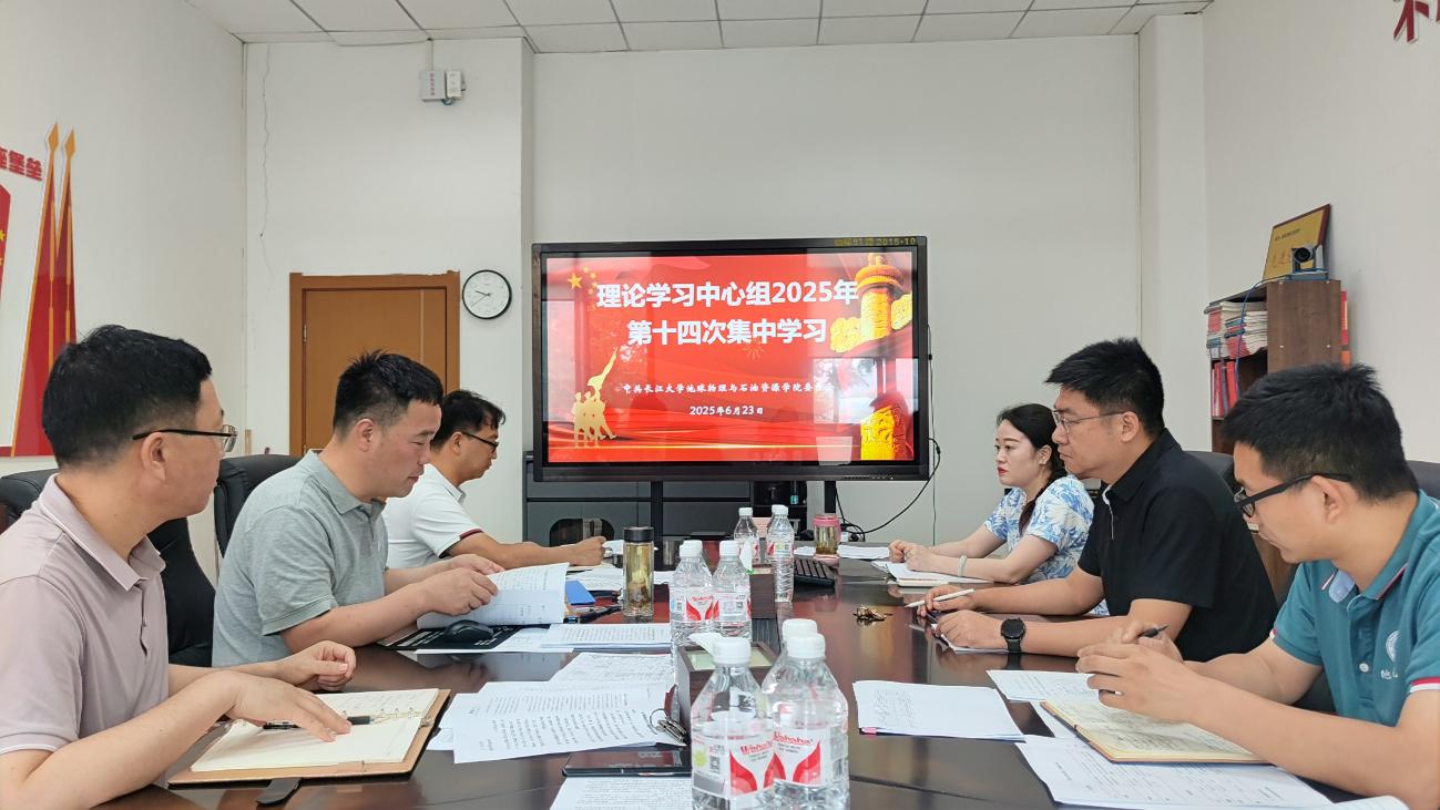 (通讯员 游菁)6月23日下午,地物学院党委中心组在石油科技大楼D111会议室,组织开展了2025年第十四次集中学习,院党委书记周俊主持会议。