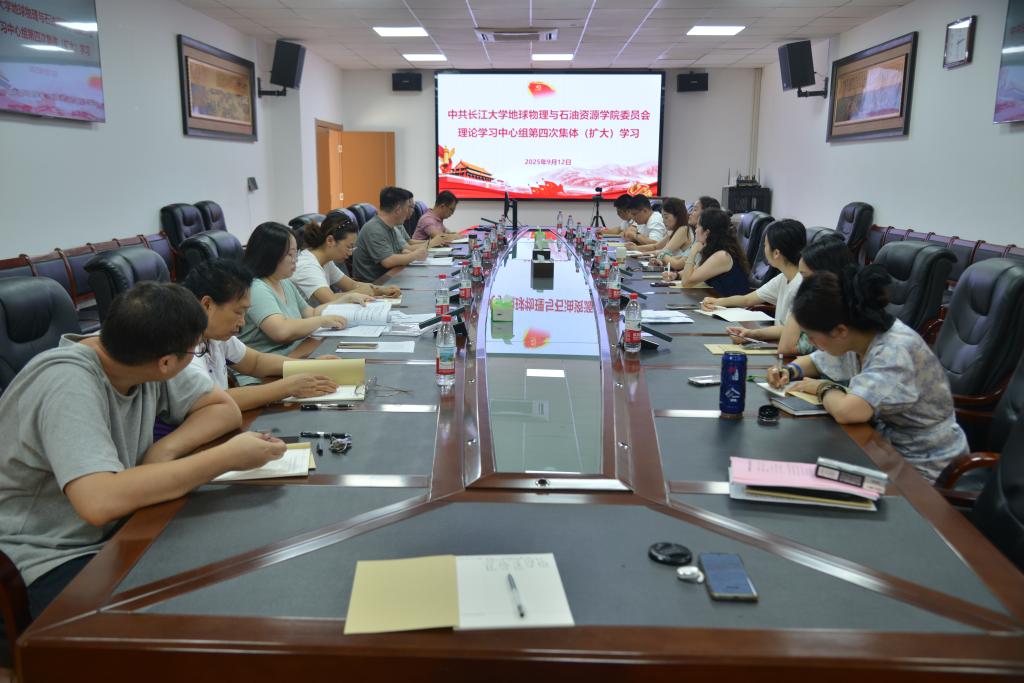 (通讯员 游菁)9月12日下午,地物学院党委理论学习中心组在石油科技大楼D318会议室召开了第四次集体(扩大)学习会。全体党委委员、党支部书记、机关管理及实验室人员参与学习,会议由分党委书记周俊主持。