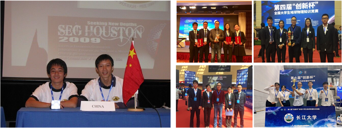 4.成果丰。近三年本学科共资助并带领38名本科生参加国际学术会议,其中15人做了大会口头报告。承担大学生创新创业训练计划项目国家级6项,省级14项。获得全国性行业大赛特等奖1项,一等奖3项,二等奖8项。培养的学生曾获SEG挑战杯中国赛区冠军。