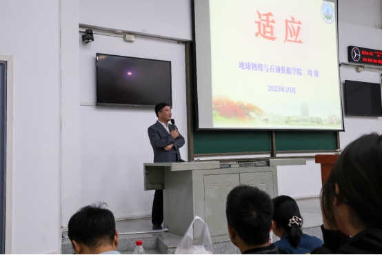周俊用富有哲理的墓志铭、鲜活生动的事迹、幽默风趣的语言,从适应武汉这座城市、适应长江大学、适应大学生活三个方面深入浅出、生动形象地为我们诠释了如何尽快适应大学。