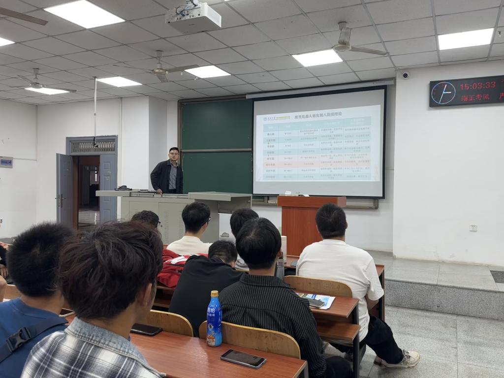 活动伊始,何忠万引用”心理健康蓝皮书“中的内容,强调了青少年群体的心理健康问题应当被重视,重点讲解了大学生常见的心理危机类型、如何正确的去解决身边同学心理危机等问题,随后向大家介绍了埃里克森八阶段理论,帮助同学们正确认识心理危机,引导学生建立心理危机发生后的自助与助人意识。