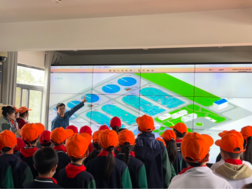 (图为厂区工作人员为小朋友们介绍污水处理流程)