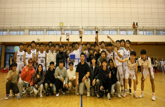 校篮球协会为前三名队伍颁发奖杯,全体球员及指导老师合影留念,持续近一个月的新生杯篮球赛在同学们的欢呼中圆满落幕。