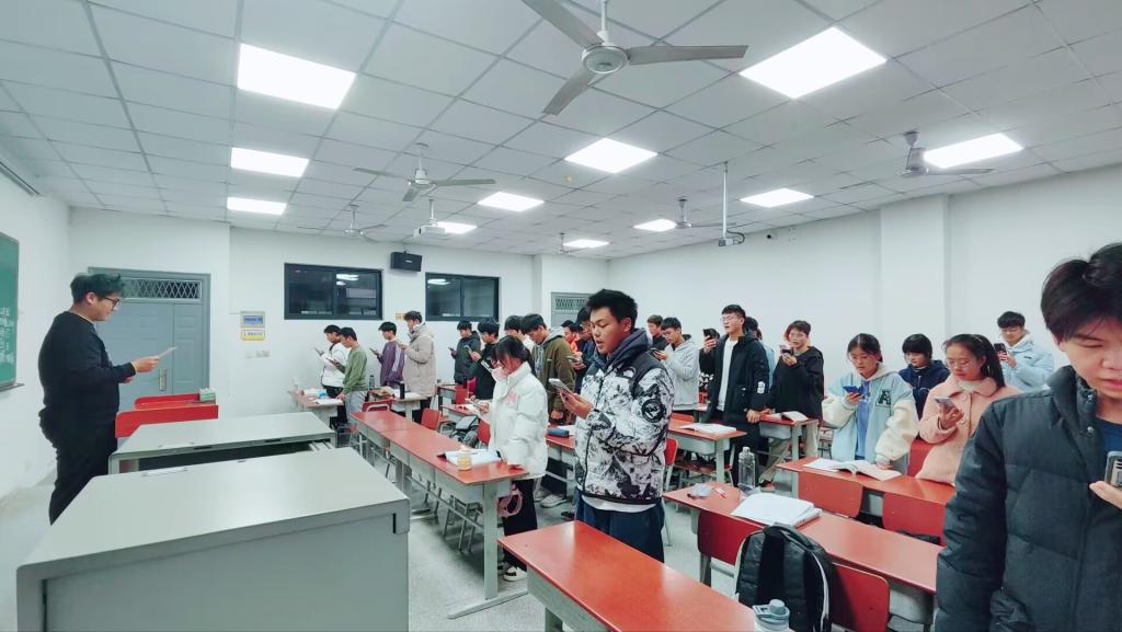 (图为地物类22301班“宪法晨读”现场)