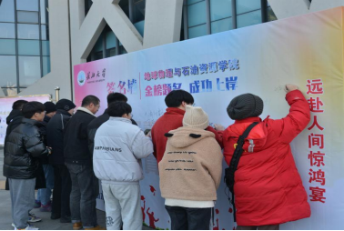 在奔赴梦想的研途上,学院老师们为每位考生送上了慰问礼包,代表着一个个美好的期许,将陪伴考研学子们走过考研冲刺之路,日夜兼程筑梦而上。全体人员在签名墙上留下了他们自信的签名和珍贵的祝福。