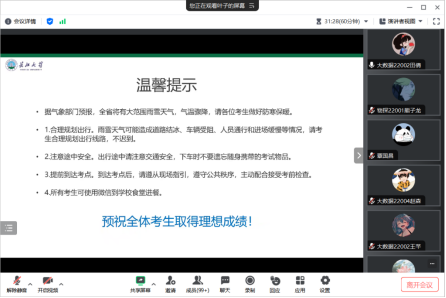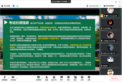 保证良好的身体状态是更好发挥实力的基石,叶丽珣温馨提醒考生在备考和考试过程中保持良好的心态,关注身体健康,保证充足的睡眠和合理的饮食,以充沛的精力和良好的精神状态迎接考试。在会议内容结束后,叶丽珣还针对同学们关于考场的一些相关问题,进行了耐心地解答。