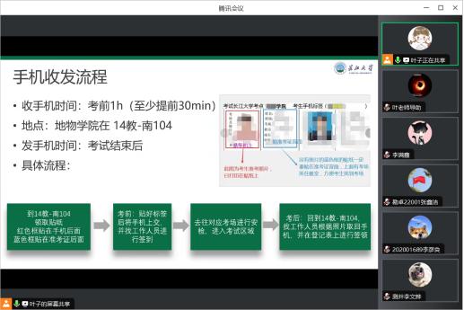 会议伊始,叶丽珣首先介绍了考试入场的流程。她表示,考生需要提前了解考试地点、考试时间等信息,确保考试当天能够准时到达考场。同时根据长江大学东校区地图帮助大家规划路线,以便于大家尽快确定考场位置。此外,叶丽珣还重点提醒了考生需要携带证件、考试用品等。
