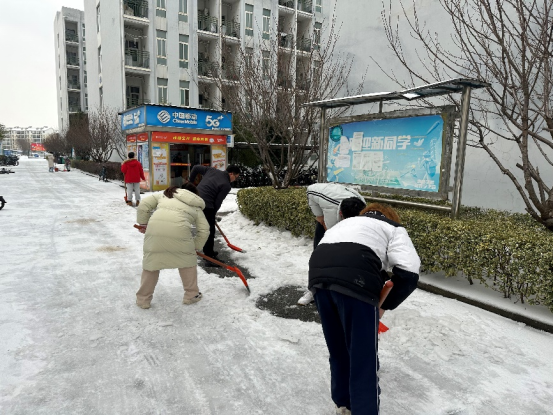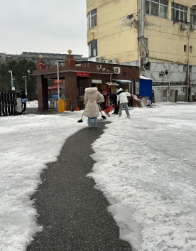 温情去积雪,爱意浓校园。师生志愿者们齐心协力,忙碌的身影构成了校园里一道靓丽的风景线,原本被冰雪全覆盖的道路开出了无雪人行道,用实际行动诠释温暖,构建安全、整洁、温暖的平安校园迎接学子回归!