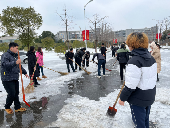 2月23日下午,学院学生事务办公室组织辅导员老师及学生志愿者们参与路面铲冰除雪志愿活动。凛冽的寒风与湿滑的路面阻挡不住大家的热情与干劲,经过两个半小时的奋战,在一阵阵凿冰声与铲雪声之中,一条从华林公寓大门通往学生公寓7栋和6栋的沥青小道破冰而出。2月24日下午,志愿者们根据校区统筹安排,继续挥舞铁锹,默契配合,干得热火朝天,用实际行动清扫出了一条从体育馆到教学楼的上课“平安路”。