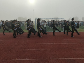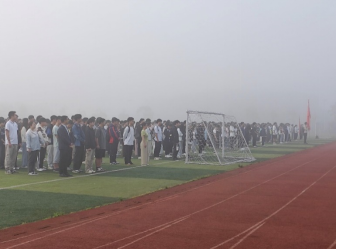 心中有目标,雾散不迷航。清晨六点四十五分,全校师生齐聚操场。扬雄风,挺傲骨,步履铿锵,国旗护卫队肩扛国旗,担当使命。升国旗,奏国歌,红旗飘扬,庄重肃穆,全场师生齐唱国歌,行注目礼。