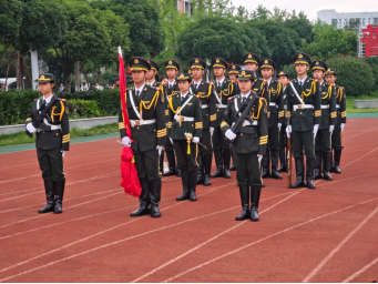 以青春之热血,护国旗之荣光。清晨六点四十五分,全校师生齐聚操场。迎着晨光,踏着朝阳,国旗护卫队擎着鲜艳的五星红旗,身穿整齐的制服,迈着矫健的步伐,向着旗台庄严行进。当国旗在庄严的国歌声中冉冉升起,全场肃立,向国旗行注目礼。
