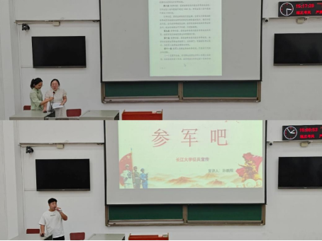 随后,在征兵宣讲主题中,征兵宣讲员孙鹏程对毕业生入伍政策、意义、注意事项等相关事项进行了宣讲。董勤文重点强调了入伍对于学生发展的利好政策,鼓励同学们积极参军报国。
