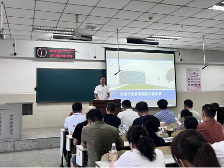 党委副书记焦简金介绍了学校学生管理制度关键条款,他摘取了《长江大学普通本科生学籍管理办法》、《长江大学学生违纪处分办法》、《长江大学学生请销假办法》和《长江大学学生资助资金管理办法》部分内容为家长解读。他表示,无规矩不成方圆,希望家长们树立法治观念、安全意识,积极关注心理健康,掌握学业状况,加强对孩子的有效沟通,履行好家庭责任,与学校一起帮助他们养成良好的学习和生活习惯,共创和谐美好的家校氛围。