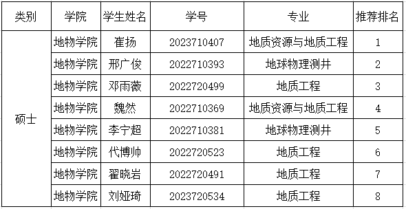 附:地球物理与石油资源学院2024年研究生国家奖学金评审结果