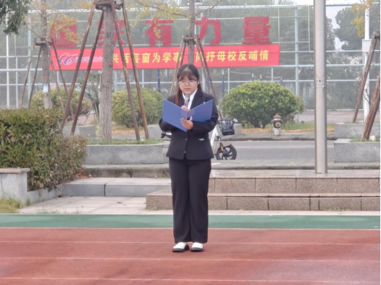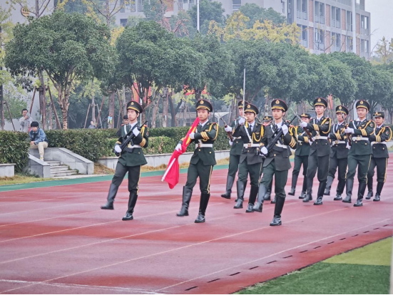 以吾辈之青春,承国家之重任。清晨七点,全校师生齐聚操场。昂首挺胸,气势如虹,国旗护卫队肩扛国旗,护卫使命。升国旗,奏唱国歌,红旗飘扬,全场师生齐唱国歌,行注目礼,向伟大祖国致以最崇高的敬意。