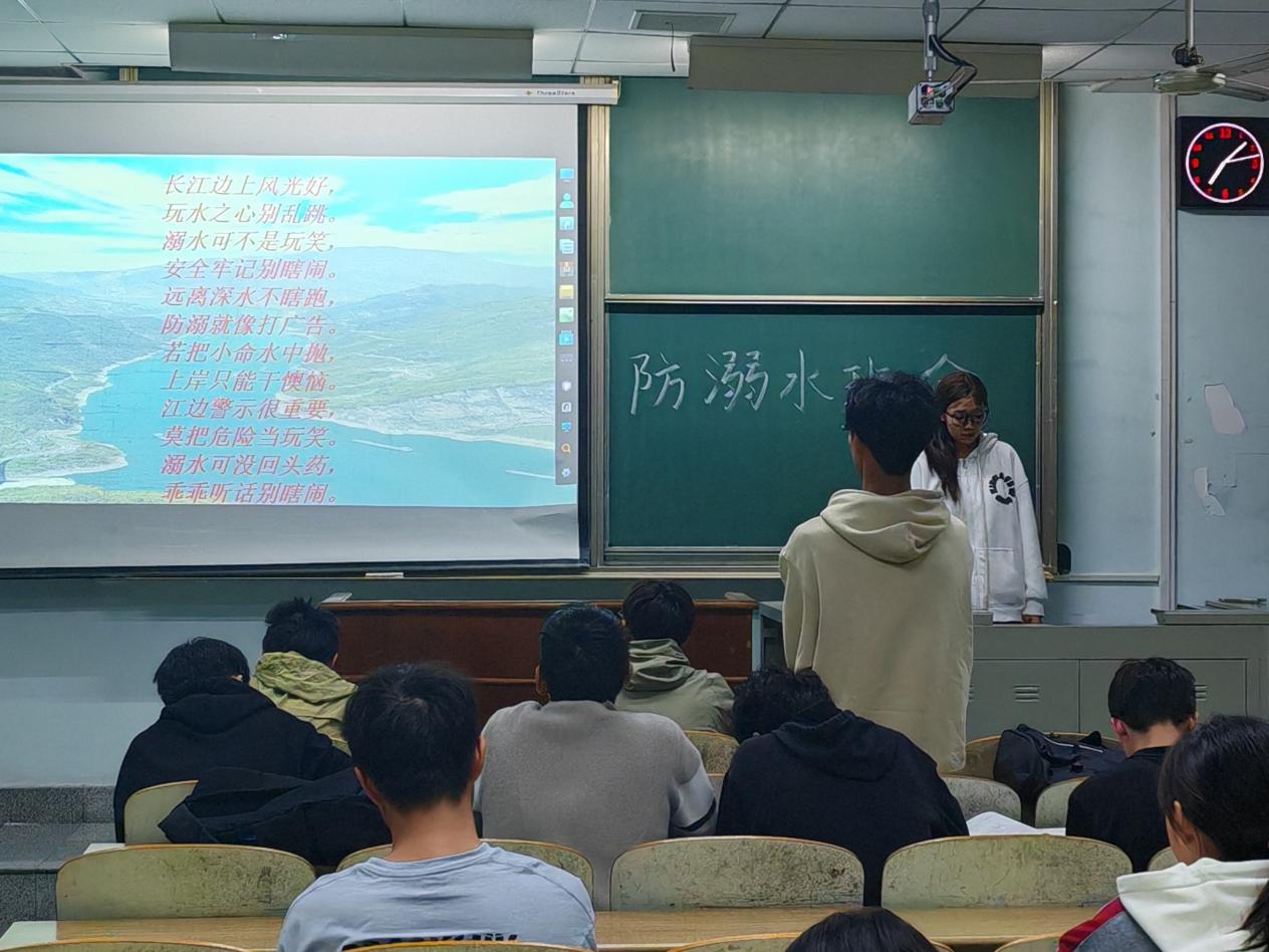 此次班会首先通过具体案例向同学直观介绍溺水的概念,溺水的主要特征及其危害性。班会特别强调东校区地处长江中游溺水事高风险地区,同学们更应加强安全意识,做好防范措施。