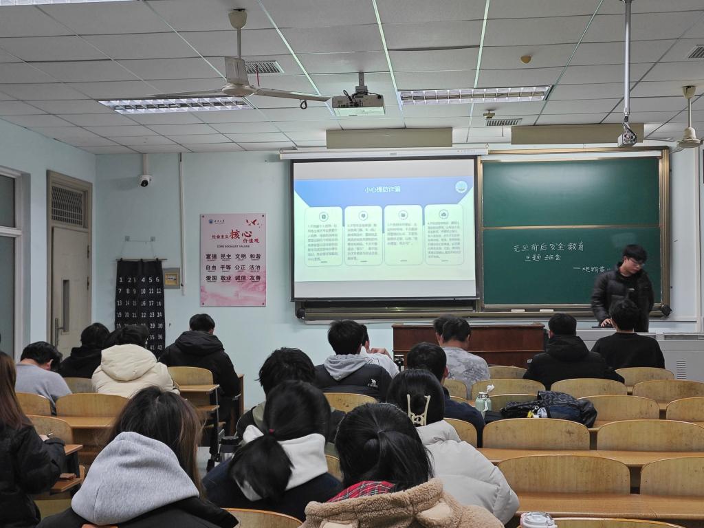 此次班会围绕“小心提防诈骗”“消除安全隐患”“确保安全出行”“保持身心健康”“筑牢寝室安全”“共建网络文明”六大核心板块精心展开。会议伊始,各班班长剖析了常见诈骗手段,为学生们进行了细致解读,并提醒同学们务必保持警觉,坚决防范任何诈骗之举。同时还强调了维护个人和家庭信息安全的重要意义、严格遵循学校宿舍消防管理的规定、高度关注饮食卫生等。此外,也积极鼓励同学们在合法且安全的前提下,踊跃投身社会实践活动。