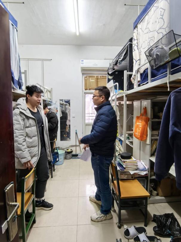 在课堂听课时,领导重点关注学生考勤、教学秩序、课堂互动等情况。在寝室走访时,领导老师与同学们亲切交流,关心学生的学习状况、生活作息、生涯规划等,了解学生需求,帮助他们解决实际问题。