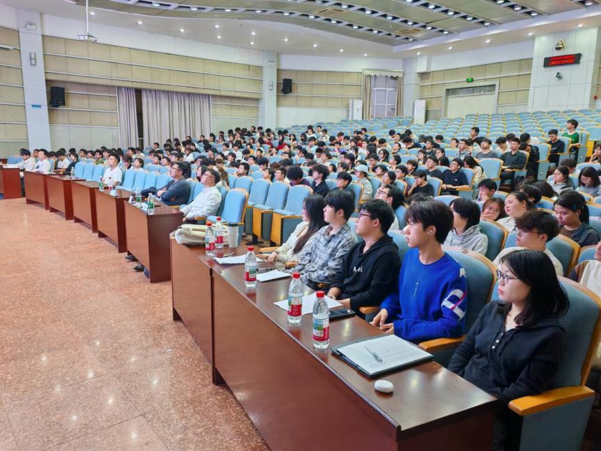 在互动交流环节,同学们围绕“极地科考应具备的条件”“自身专业在海底探测的应用”,“北冰洋海底探测对生态环境的影响”,“中国自主研发的海底探测设备”等问题踊跃提问。牛雄伟逐一耐心答疑解惑,并给出建议。