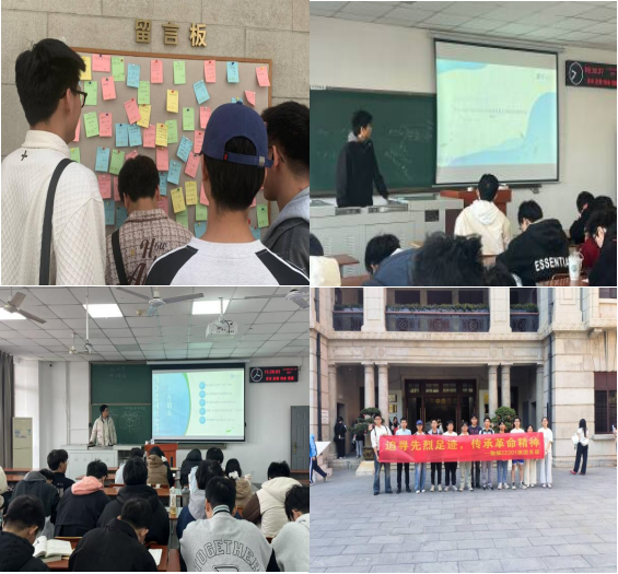 团支部共有37名成员,现有团员26人,其中预备党员3人,发展对象2人,积极分子4人,提交入党申请书18份。全体同学共同投身于班级思想建设,团支部积极依托“青年大学习”、“学习强国”等线上学习平台,不断强化理论武装,进一步筑牢了青年学生的理想信念之魂。团支部坚持班团一体化的发展模式,推动支部各项工作稳步前行,并不断丰富学习形式,积极开展“追寻先烈足迹,传承革命精神”等主题突出、特色鲜明、形式多样的专题教育实践活动,有效提升了团员青年的思想觉悟,支部的凝聚力愈发增强。此外,团支部的成员们积极投身各类志愿服务和社会实践活动,如“三下乡”活动、姚家林小学支教、王家湾地铁站志愿服务等,用实际行动展现了他们热爱公益、奉献社会的良好精神风貌与时代担当。