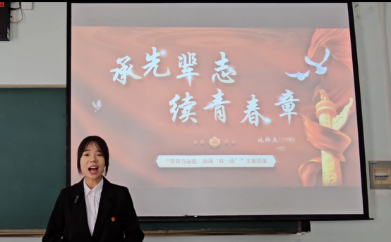 现场气氛热烈,选手各展风采。评委综合评分后,地物类12401班柯星同学获得本次团课展示一等奖,被推选代表学院参加校级比赛。