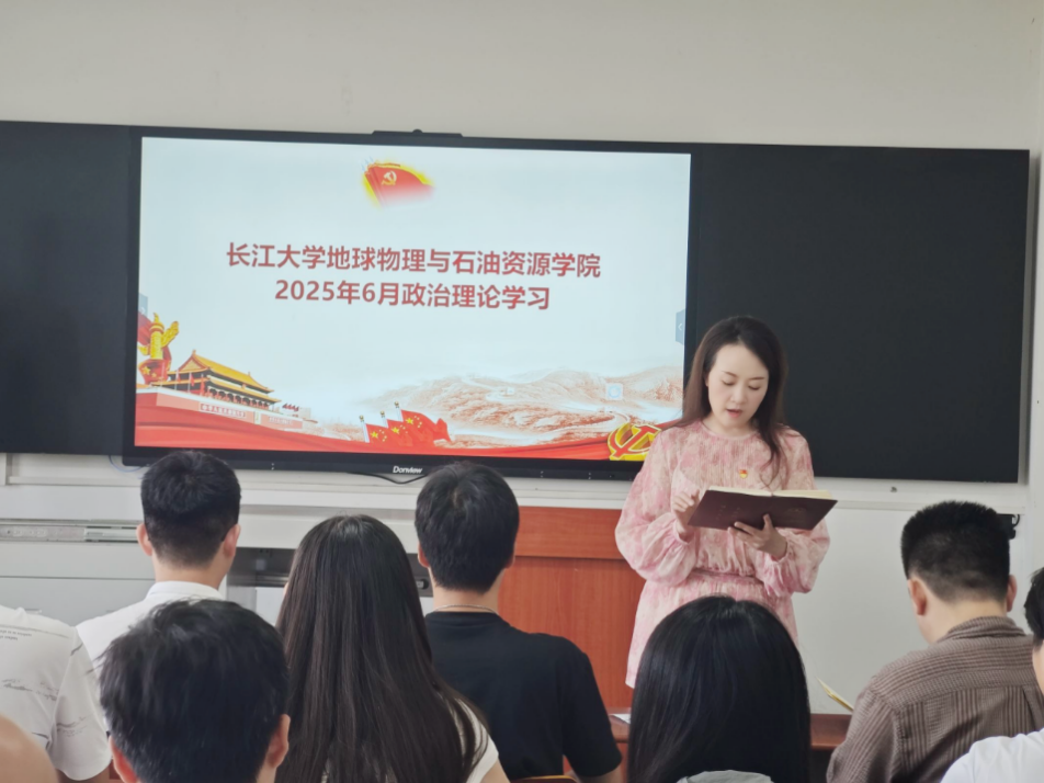 (通讯员 高雪洁)为深入学习贯彻习近平新时代中国特色社会主义思想,坚定理想信念、厚植家国情怀,长江大学地球物理与石油资源学院研究生第一党支部于2025年6月13日在武教B204开展了政治理论学习活动。此次活动由研究生辅导员李蓓蕾主持。