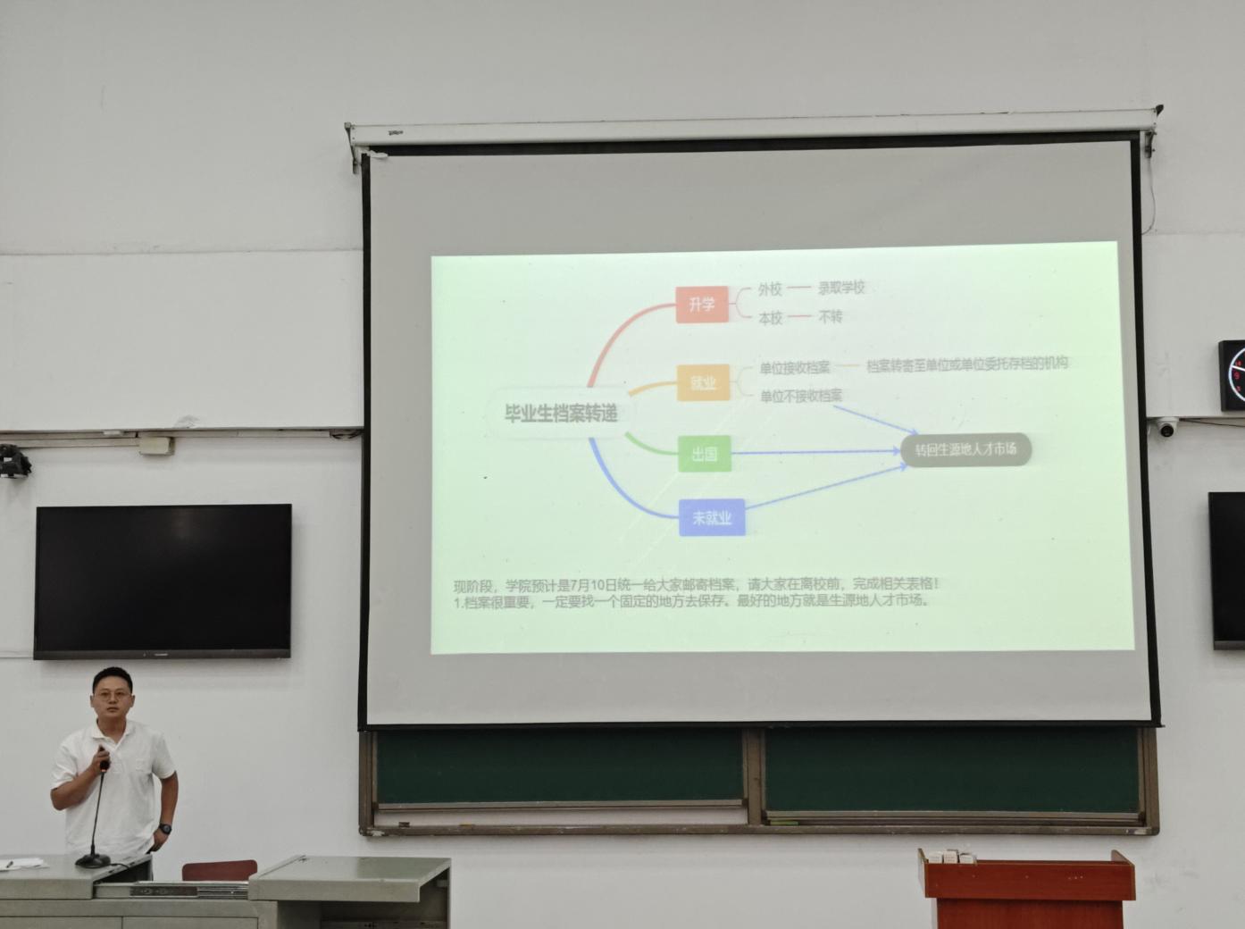 就业专干何忠万围绕毕业生档案转递与就业工作进行专项指导。他针对升学、就业、出国、未就业等不同去向,分类讲解档案转递流程与注意事项;同时,就就业信息修改流程、就业核查规范等工作进行细致说明,确保毕业生离校后档案与就业相关事务有序衔接。