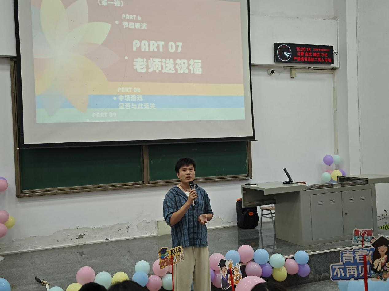 (通讯员 张泰乐)2025年6月10日下午,长江大学地球物理与石油资源学院2025届本科毕业生欢送会在武教B101温情启幕。地物学院党委副书记焦简金、武汉校区团委书记荆鑫、毕业年级班主任、学工办全体教师与全体本科毕业生齐聚一堂,在温馨氛围中共叙情谊、展望未来。