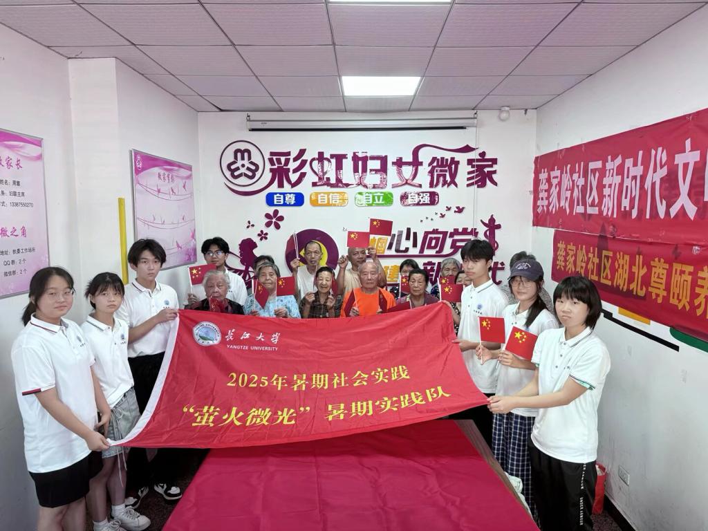 (通讯员 林中枭)7 月 24 日,在八一建军节即将到来之际,长江大学地物学院萤火微光志愿服务队的志愿者们走进龚家岭社区,与社区老人共同开展 "红旗映初心,银龄庆八一" 主题活动。通过手工制作五星红旗、重温红色记忆,让八一精神在银龄群体与青春力量的双向互动中绽放时代光芒。