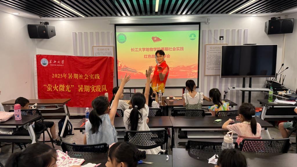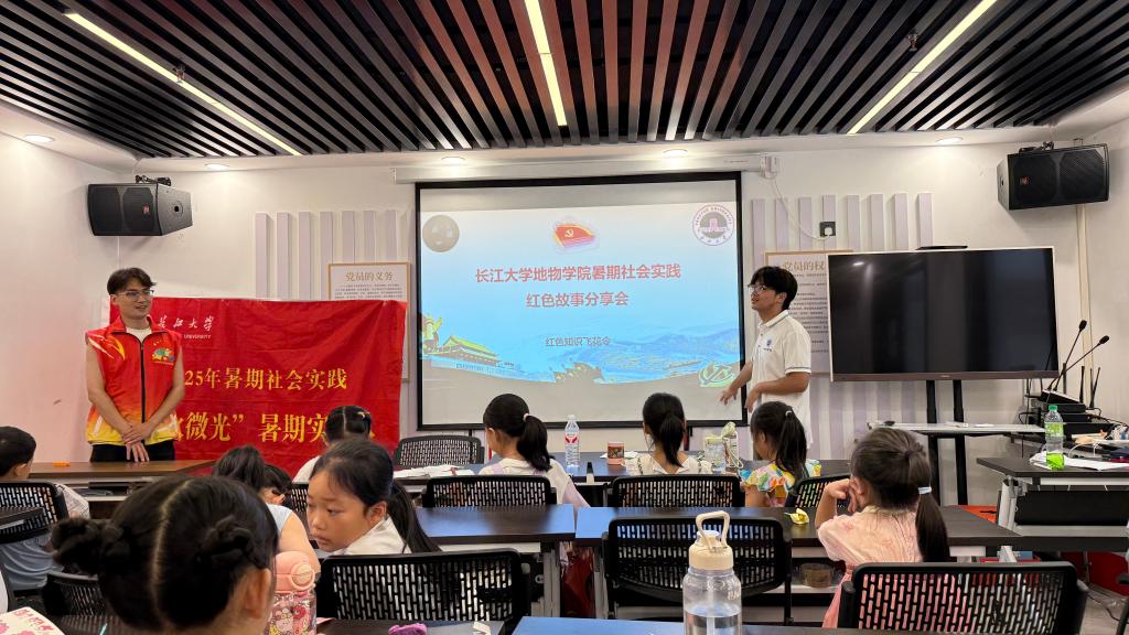 (通讯员 林中枭)地物学院萤火微光志愿服务队在西湾湖社区的 “爱心托管班” 中,举办了一场生动的红色故事分享会。志愿者们声情并茂地讲述革命先烈、时代楷模的感人事迹,让孩子们在静静聆听中感悟初心使命,在深深感动中汲取前行的力量,让红色基因在童心间流淌。