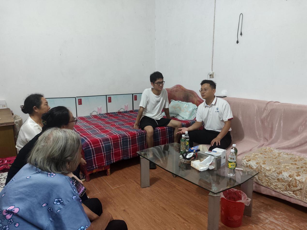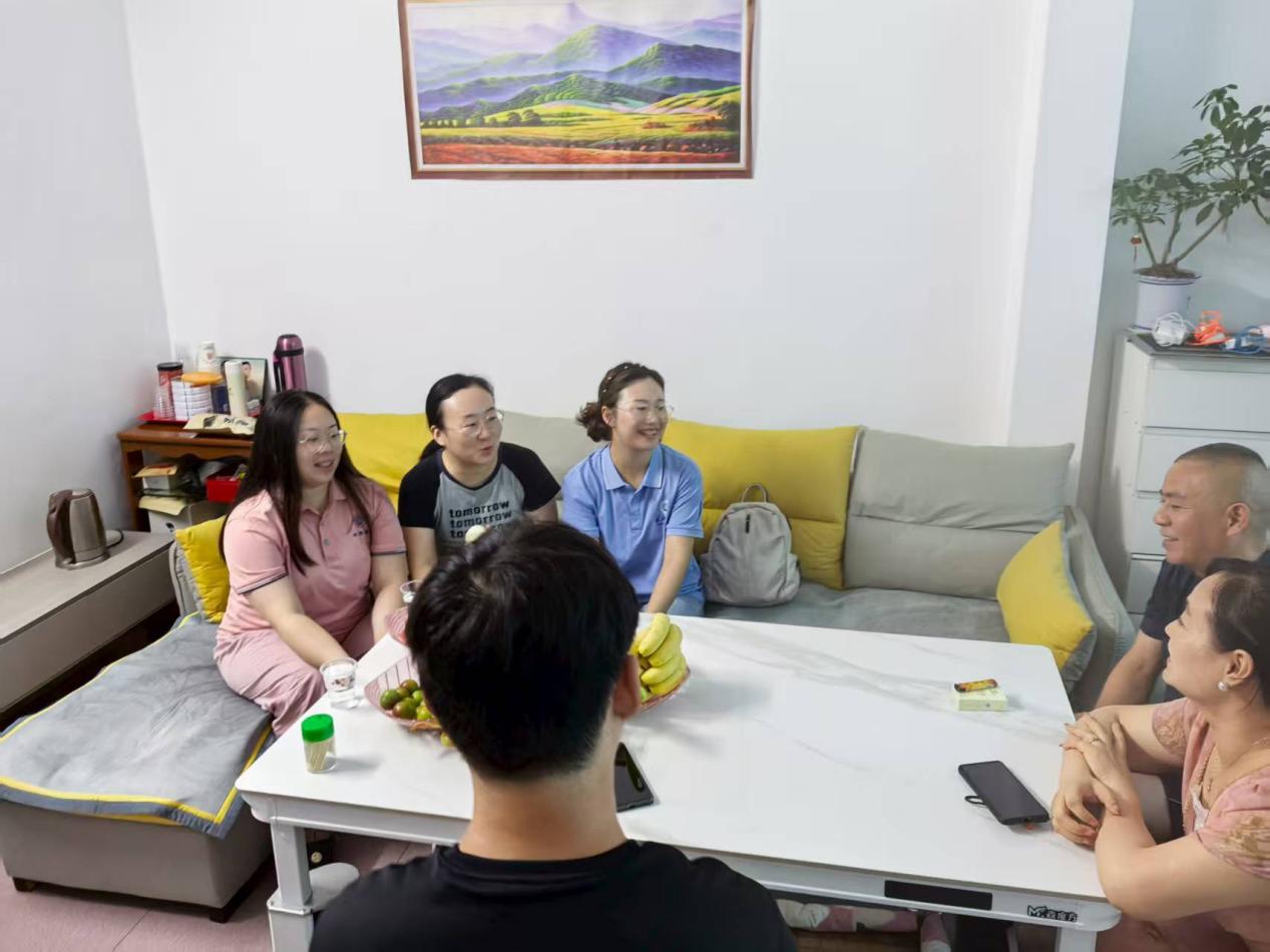 在武汉,家访团队重点聚焦学生思想动态与长远发展。党委副书记焦简金结合学生在校综合表现,向家长全面反馈其成长亮点与待提升空间。辅导员们则发挥专业优势,根据不同学生的性格特点、专业方向,提供个性化、精细化的职业发展指导,包括解析行业前景、建议实习选择、规划考研路径、解读考公政策等。老师们引导学生将个人理想融入社会需求,在实践中锤炼能力,并特别提醒家长关注子女心理健康,培养其积极应对挑战的乐观心态。深入交流使许多家长对孩子的未来规划豁然开朗,表示将全力协同学院做好后续支持引导。