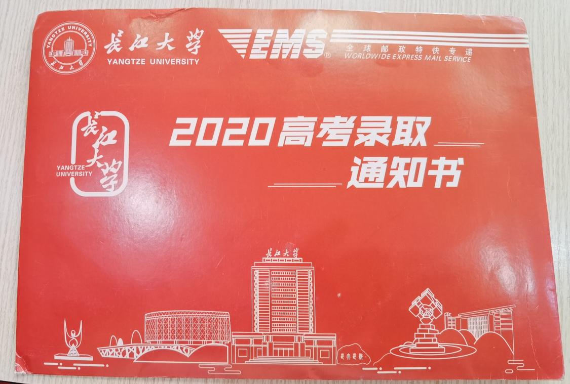 图:2020年陈冠达收到了长江大学在辽宁省的第一份录取通知书