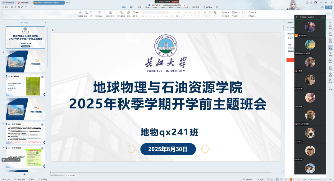 (通讯员 王仁飞 罗焯文)为保障2025年秋季学期开学工作有序开展,确保学生安全返校,地物学院各老生班级于8月29日至9月2日组织开展了开学前主题班会。