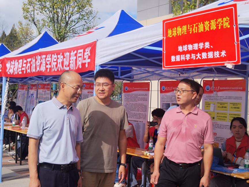 高度关切,现场指导。学校高度重视迎新工作,领导亲临学院报到点实地察看工作进展,详细了解新生报到情况,与新生及家长亲切交谈,耐心解答他们的疑问,并现场协调解决各类问题,确保迎新流程高效有序、温馨周到。