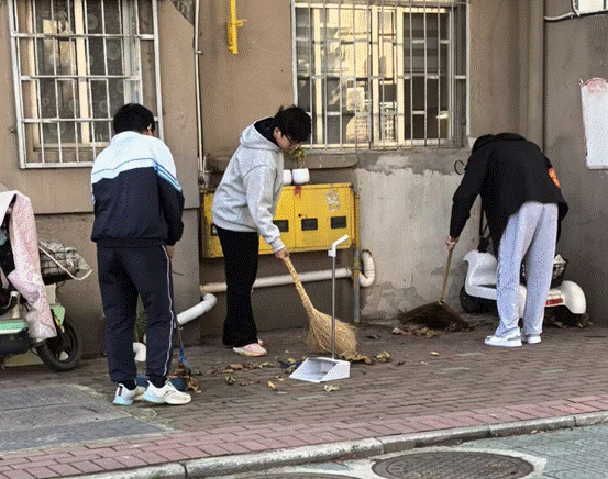 在谭老师的统一安排下,36名同学分为三个小组,对东校区东二门旁三栋公寓周边区域进行了全面细致的清洁维护。各小组分工明确、责任到人,重点清理草坪内的落叶、散落垃圾以及楼道旁的堆积杂物。