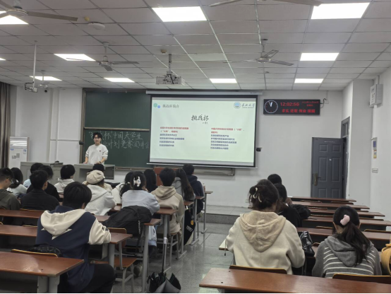 在申报材料指导环节,宣讲团队展示了优秀项目案例,围绕项目PPT和商业计划书的撰写要点展开讲解,强调项目需紧扣“顶天、立地、实践”三大原则:即服务国家战略、立足行业实际、聚焦真实问题。现场学生积极参与互动,纷纷表示宣讲内容实用,对备赛具有重要指导意义。