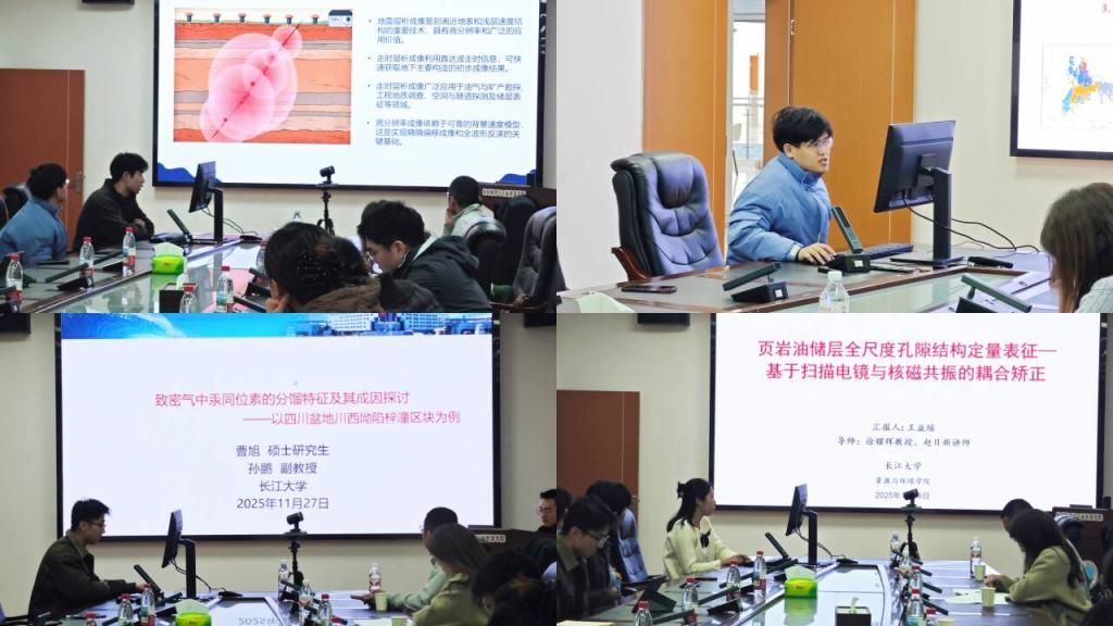 汇报过程中,现场学术氛围浓厚,师生互动积极。与会教师对每位报告人的研究内容进行了细致点评,围绕选题意义、技术路线设计、数据处理方法及成果凝练等方面提出了建设性意见,鼓励研究生夯实理论基础,增强跨学科思维,提升科研创新能力。在自由交流环节,同学们就神经网络模型构建、光纤测井数据解译、地热系统数值模拟以及沉积地质野外调查等热点问题展开了热烈讨论。