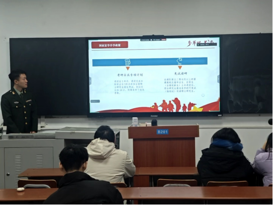 本次宣讲会通过“政策解析+事迹分享”相结合的方式,为同学们搭建了一个了解军营、认知国防的窗口,有效增强了青年学子献身国防、报效国家的使命感和责任感。学院将继续深化国防教育,鼓励和支持更多优秀学子携笔从戎,在强国强军的伟大征程中贡献青春力量。