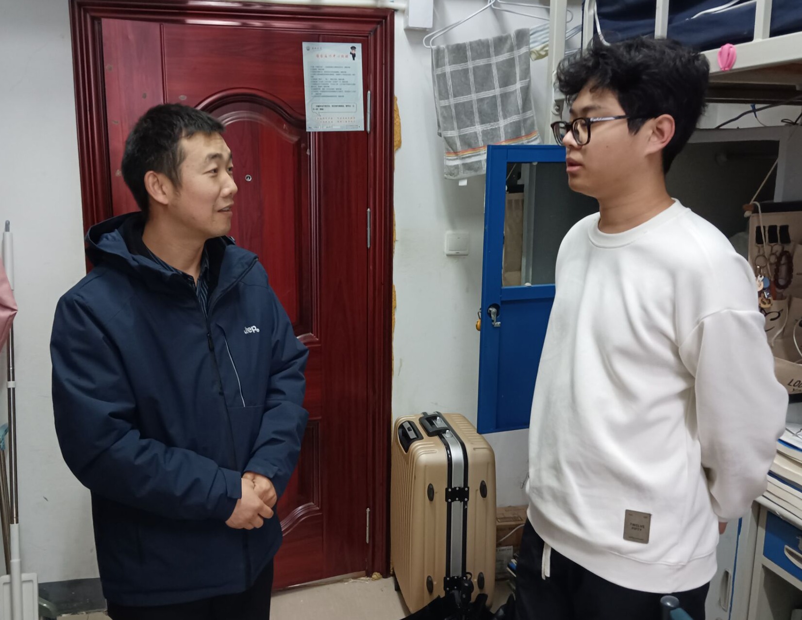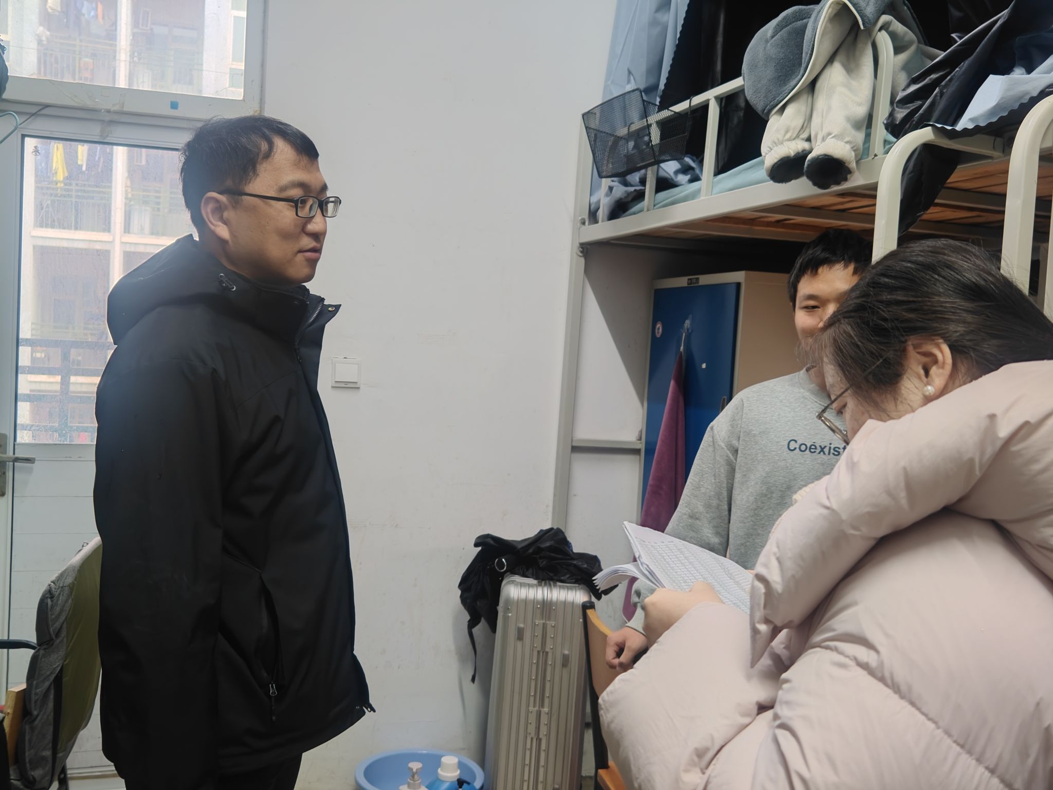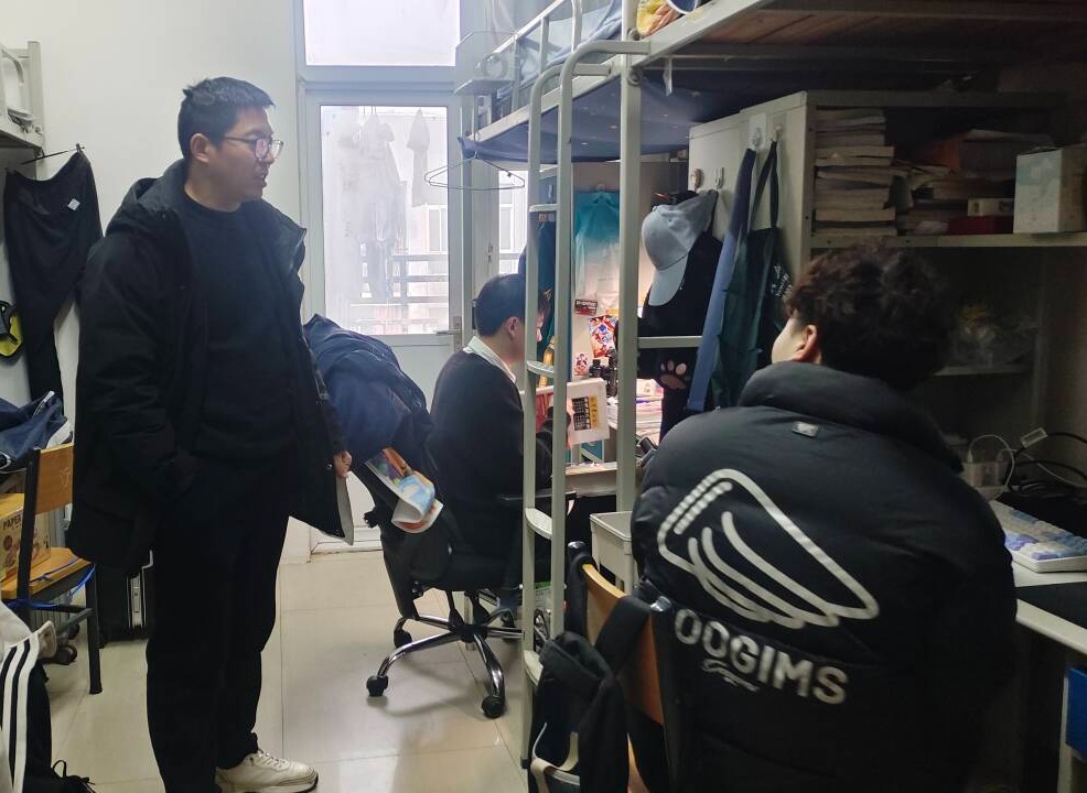 走访中,领导老师们与同学们亲切交谈,细致询问寒假生活状况、返校行程是否顺利以及新学期的学习规划与个人目标。针对同学们在学业、生活中遇到的实际困难,老师们耐心倾听、现场解答,并给出切实建议。点滴问候浸润心田,声声叮嘱饱含期许,宿舍内笑语盈盈,满是温馨融洽的师生情谊。