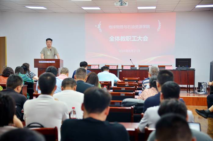 (通讯员 余为)5月21日,学院在石油科技大楼A405会议室召开了全院教职工大会,会议由院党委书记周俊主持。