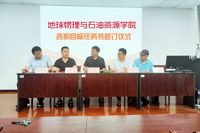 会上,赵彬副院长(主持工作)与测井信息工程系、地球物理勘探系、固体地球物理系和数据科学系的系主任签订了各系目标责任书。他提出了2024年科研目标,安排了存量专利盘活和科研项目结题及结题项目余额清理,以及学位点周期性核验等工作,着重强调了学位点评估的时间节点和评估程序。