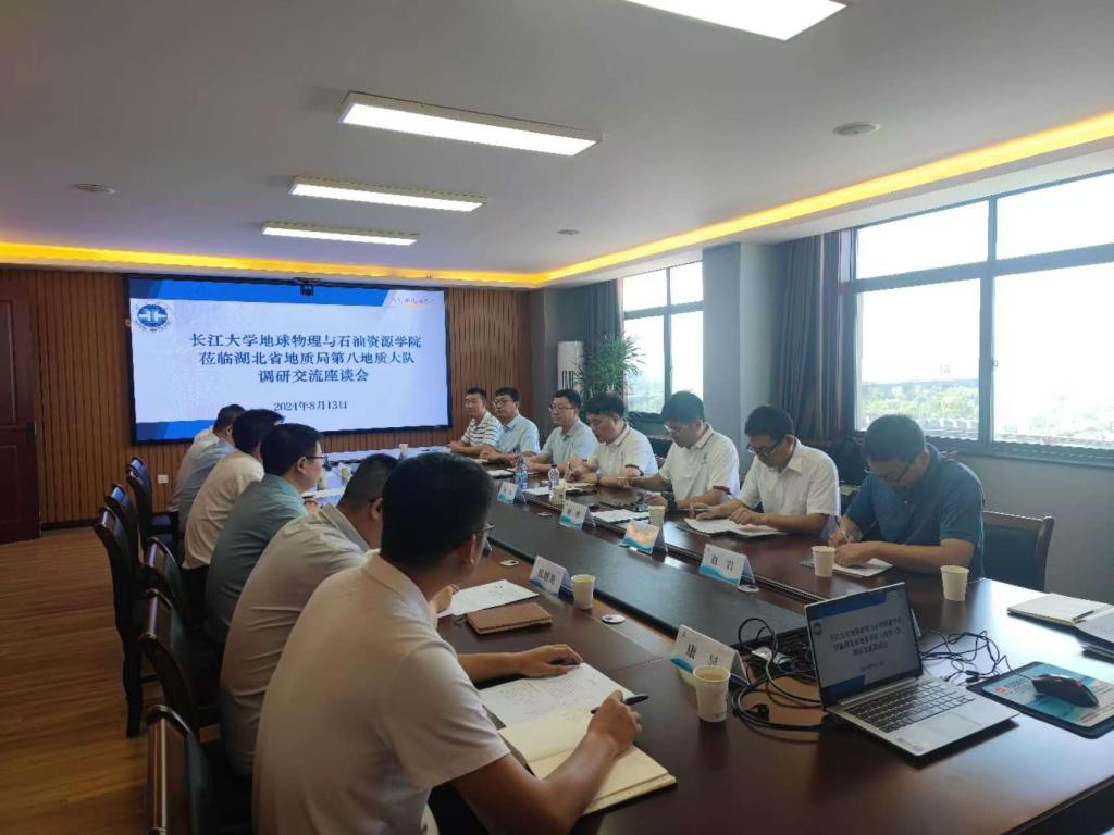 8月13日,党委书记周俊带队赴湖北省地质局第八地质大队调研交流。大队党委书记刘冬勤,党委委员、副队长李硕、徐鹏,地质矿产勘查院、襄阳地质工程勘察院、环境地质中心等相关负责人与周俊一行进行座谈,双方就物探技术需求与学院特色技术、实验测试平台建设、毕业生就业等深入交流。座谈会后,周俊一行参观了湖北省地质局第八地质大队队史展览厅,学院技术专家深入大队地质矿产勘查院进行技术对接。