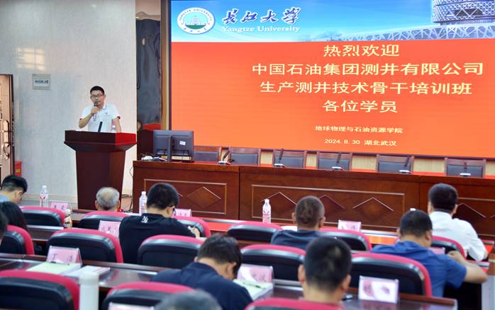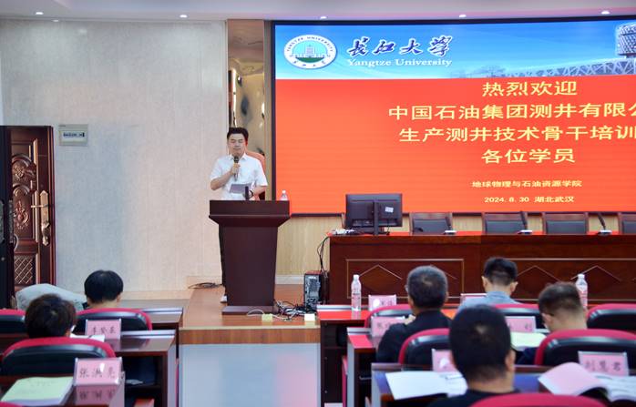 (通讯员:刘军锋)8月30日上午,中国石油集团测井有限公司(简称中油测井)2024年生产测井技术骨干培训班在武教B110会议室正式开班。CNLC培训中心的领导高洁玉、王红涛,副院长陈伟,以及测井信息工程系副主任刘军锋等教师代表出席了开班典礼。