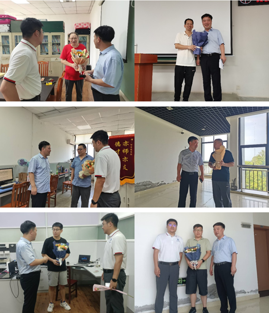 旭日初升,晨光绚丽。学院党委书记周俊、副院长(主持工作)赵彬和党委副书记焦简金代表学院为资深教师代表和新入职的教师们献上鲜花,表达了学院对老教师们几十年如一日辛勤教学的衷心感谢,也表达了对新教师的殷切期盼。