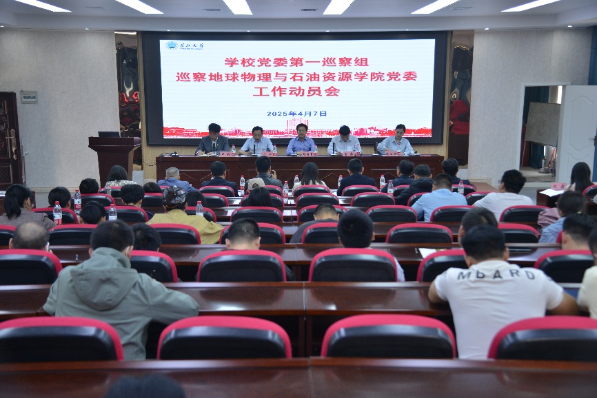 (通讯员 游菁)4月7日下午,学校党委第一巡察组巡察地球物理与石油资源学院党委工作动员会在武教B110召开。校党委常委、纪委书记、监察专员、党委巡察工作领导小组副组长刘靖君,校党委第一巡察组全体成员、地球物理与石油资源学院领导班子成员、全院教职工参加了会议,会议由地球物理与石油资源学院党委书记周俊主持。