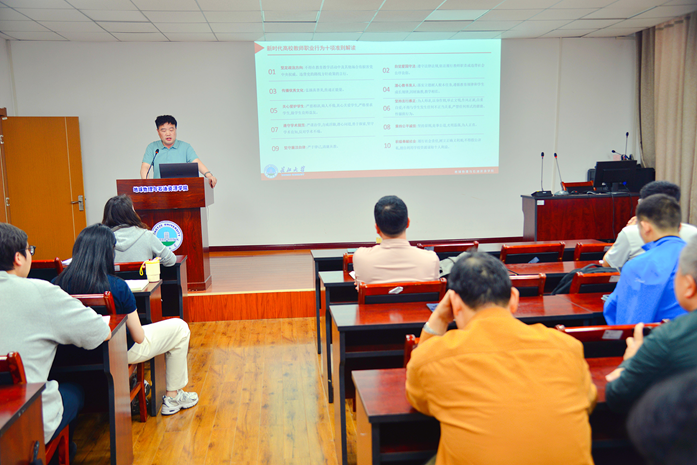 开展师德师风建设培训。他带领学习习近平总书记关于师德师风的重要论述,明确当好 “四个引路人”、争做 “四有好老师”。解读新时代高校教师职业行为十项准则,学习《长江大学师德师风失范行为处理办法》,列举明令禁止的四种行为。
